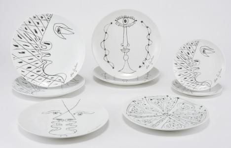Suite de six grandes et deux petites assiettes à motif de profil...