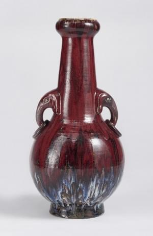 Anses à une tête d'éléphant soutenant un anneau, céramique à gla...