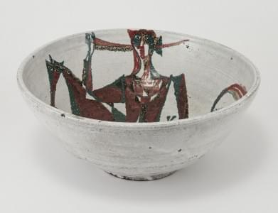 Grande coupe, céramique émaillée à décor d'un cavalier, signée e...
