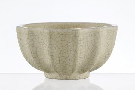 Coupe à côtes, céramique émaillée ivoire craquelée, signée Boas...