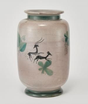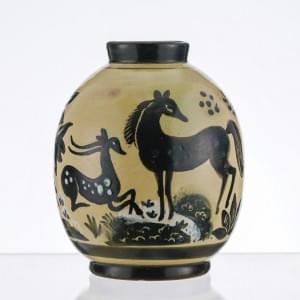 Vase ovoïde à décor d'animaux sauvages, céramique émaillée beige...