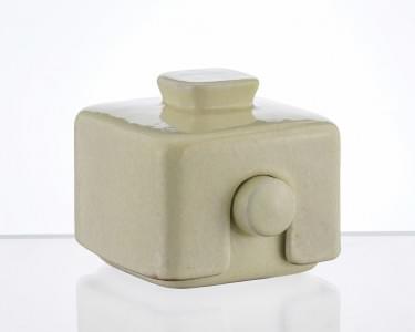 Boîte couverte de section carrée, céramique émaillée ivoire craq...