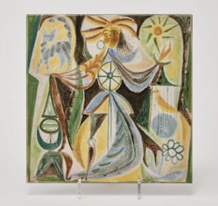 Grand carreau, céramique émaillée à décor de la fortune, 28x28 c...