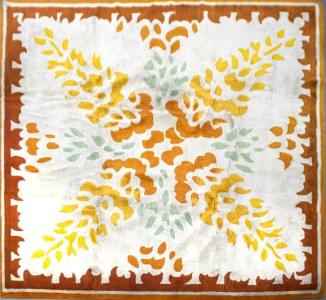 Laine à motifs verts, orange et jaunes sur fond crème, 291x291 c...