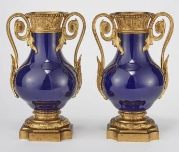 581. Paire de vases balustres à monture ciselée d'acanthes et couronn...