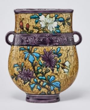 Anses en termes à tête de femmes ailées, faïence émaillée grand...