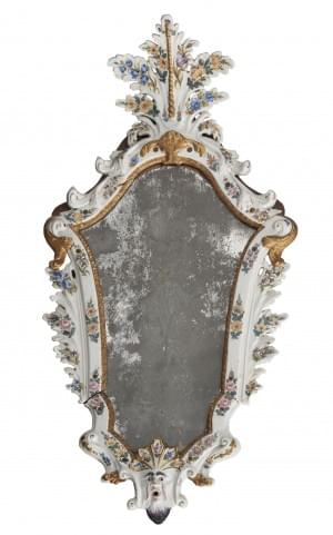 Faïence émaillée polychrome à décor de fleurs, glace au mercure...