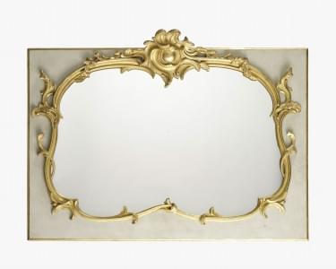 Bois sculpté, stuqué, doré et laqué blanc, 100x69 cm