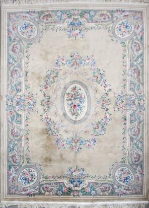 Soie, à décor de motifs centraux sur fond bleu ciel et ivoire, 1...