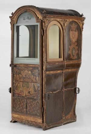650. Chaise à porteurs en partie d'époque XVIIIe s, modifiée en vitri...
