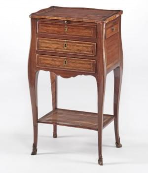 Une tablette, trois tiroirs dont un latéral, bois de violette et...