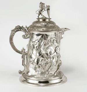 859. Monumentale chope d'époque victorienne à décor repoussé d'une ba...