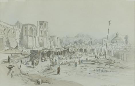 Grande place de Téhéran, aquarelle intitulée à la mine de plomb,...
