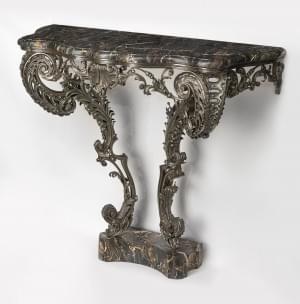 Fer forgé et tôle repoussée, ajourée et argentée à décor rocaill...