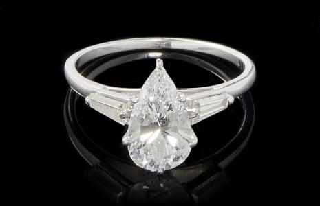 1077. Bague sertie d'un diamant taille poire (env. 1,9 ct) épaulé de d...