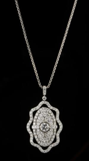 987. Collier retenant un pendentif porte-photo centré d'un diamant (e...