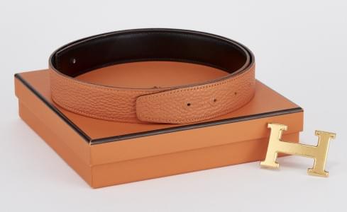 Métal doré martelé et cuir grainé orange ou noir, T 80