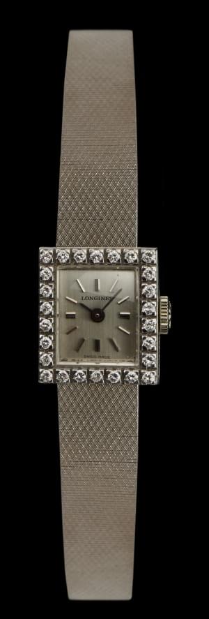 919. Longines, montre bracelet mécanique rectangulaire sertie de diam...