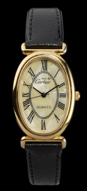 Cadran nacré, aiguilles et chiffres romains noirs, métal doré, 3...