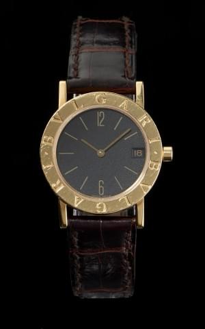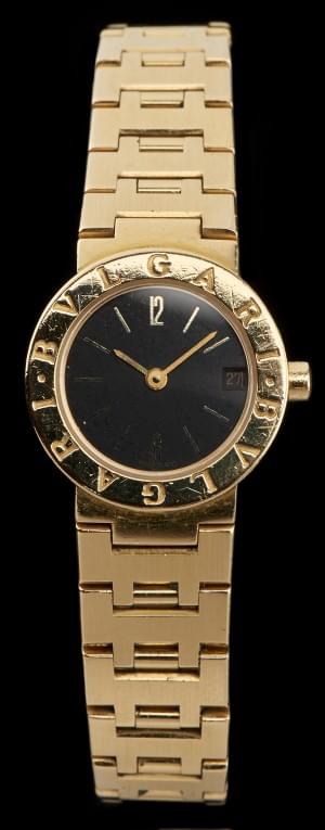 Cadran noir, aiguilles dorées, boîtier en or 750, 22x26 mm, poid...