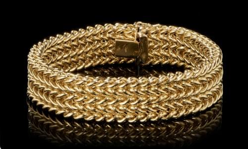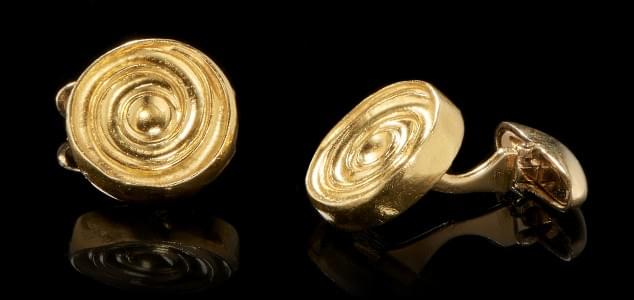 956. Boutons de manchettes à motif de maille gourmette deux ors