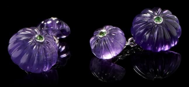 955. Boutons de manchette à motif de fleurs en améthyste sculptées ce...