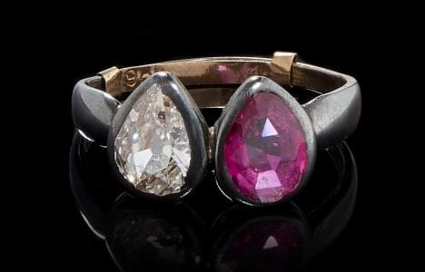 958. Bague "toi et moi" sertie d'un rubis (env. 0.6 ct) et d'un diama...