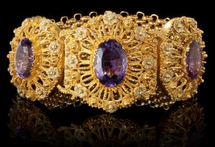 962. Bracelet manchette serti de trois améthystes ovales (env. 15 ct)