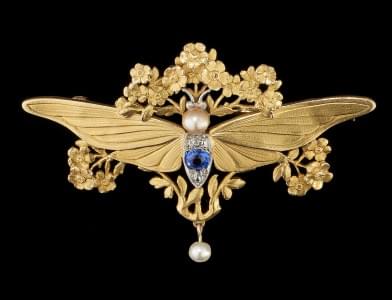 979. Broche papillon Art nouveau sertie d'un saphir rehaussé de deux...