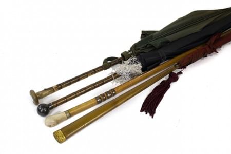 3000. Lot de trois parapluies et d'une canne