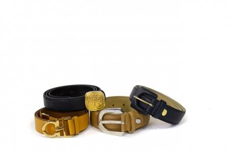 Cuir noir, beige et jaune, boucles en métal doré et argenté, L 8...