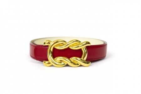 Cuir lisse rouge, boucle en métal doré, L 82 à 90 cm