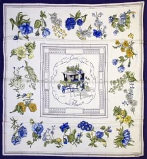 3013. Hermès, lot de deux foulards l'un "Quai aux fleurs" à motifs d'a...