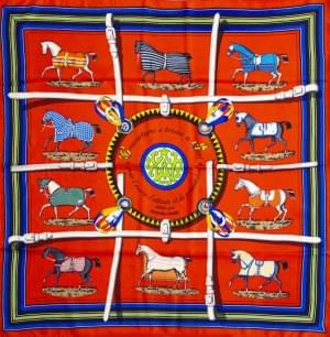 3014. Hermès, lot de deux foulards, l'un "Couvertures et tenues de tou...
