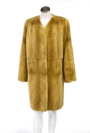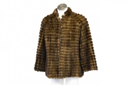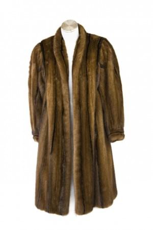 Fourrure brune, probablement vison rasé, intérieur en tissu beig...