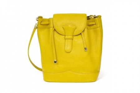 Cuir grainé jaune, intérieur en cuir lisse crème, fermeture en l...