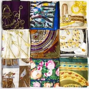 3035. Lot de neuf foulards, notamment signés Cartier, Christian Lacroi...