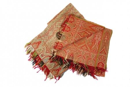 Soie à fond vert et rouge, L de 139 à 150 cm