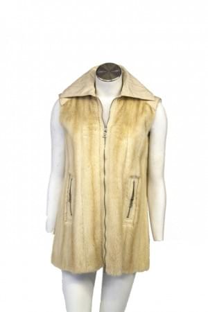 Fourrure de vison crème, intérieur en tissu beige, deux poches l...