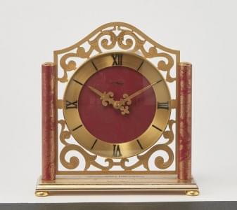 Cadran rouge, aiguilles dorées, chiffres romains noirs, métal do...