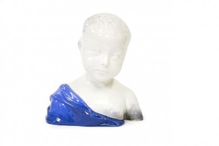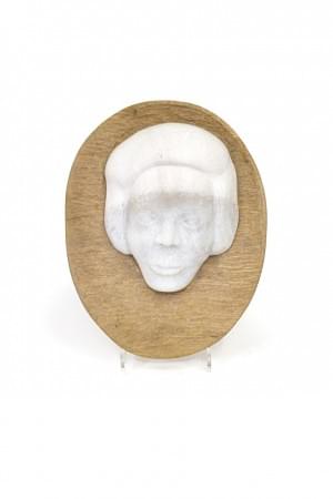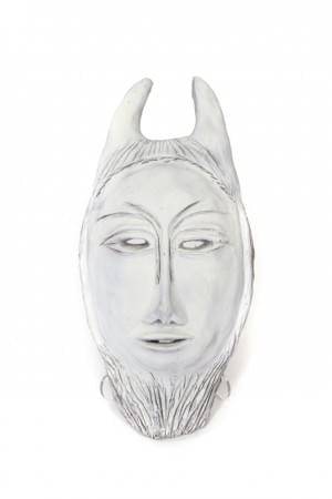 Masque de satyre, terre-cuite émaillée blanche, H 35 cm