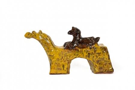 Terre-cuite émaillée marron et jaune, L 40 cm
