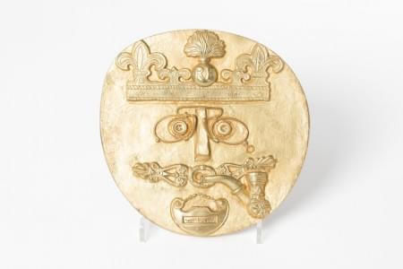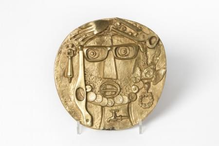 Mardi-gras, médaillon en bronze à patine dorée, D 23 cm. Bibliog...