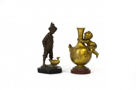 Régule patiné et marbre, L 26 cm