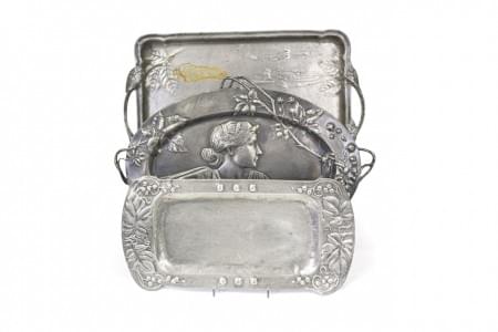 3964. Trois plats en étain d'époque Art nouveau
