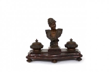 3979. Encrier sommé d'un buste de jeune femme, circa 1900