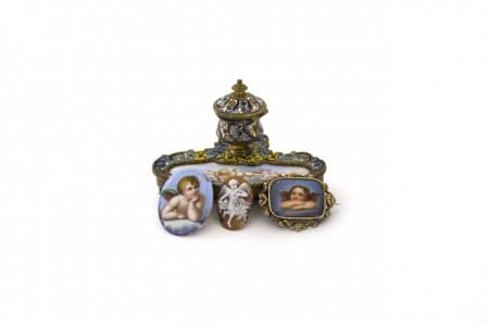 3986. Encrier en cloisonné à décor d'anges
