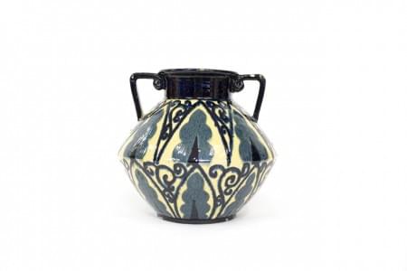 Céramique à décor polychrome de fleurs et motifs stylisés et mét...
