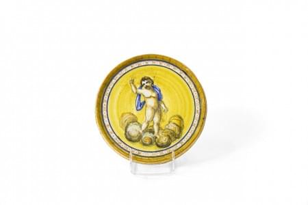 Céramique émaillée polychrome à décor, sur les deux faces, de sc...