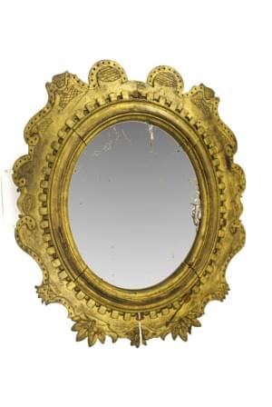 Bois sculpté et doré, glace au mercure, 47x39 cm